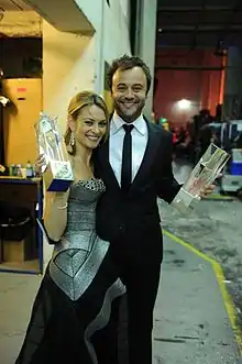 ![]() Kat junto al actor Gyton Grantley durante la entrega de los premios AFI Awards en 2008. | ||