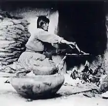 - Landlady putting bread in oven (Casera poniendo el pan en el horno)