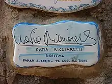 - Esta obra contiene una traducción derivada de «Katia Ricciarelli» de Wikipedia en inglés, concretamente de esta versión del 28 de octubre de 2008, publicada por sus editores bajo la Licencia de documentación libre de GNU y la Licencia Creative Commons Atribución-CompartirIgual 3.0 Unported.