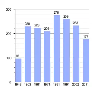 Gráfica de evolución demográfica de Kavilo entre 1948 y 2011 |