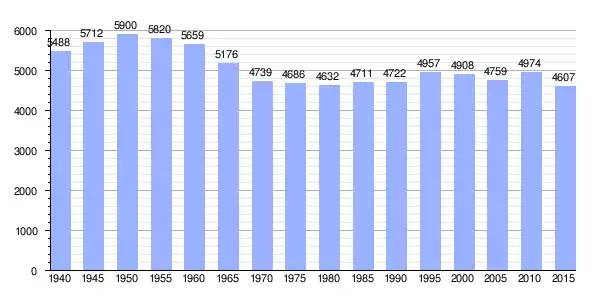 Gráfica de evolución demográfica de Kawakami entre 1940 y 2015 |