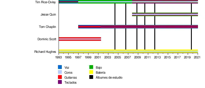 - Tom Chaplin - voz, guitarras, piano, teclados, órgano (desde 1997)