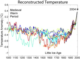 - Osborn T.J. and K.R. Briffa (2006). «The spatial extent of 20th-century warmth in the context of the past 1200 years». Science 311 (5762): 841. PMID 16469924. doi:10.1126/science.1120514.