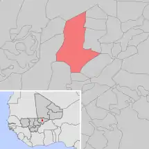 Se encuentra ubicada en el centro del país , cerca del río Níger, de los acantilados de Bandiagara y de la frontera con Burkina Faso.