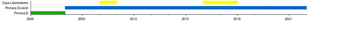 - Temporadas en Primera B: 2 (2006; 2007)