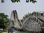 La atracción estrella del parque era The Racer, una montaña rusa de madera de dos pistas paralelas diseñada por John Allen.