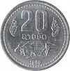 20 Att | 1980 | Al | Circular | 23,00 | 1,70 | Escudo de Laos - ສາທາລະນະລັດປະຊາທິປະໄຕ ປະຊາຊົນລາວ | 20 ອັດ - Campesino arando |