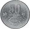 50 Att | 1980 | Al | Circular | 26,00 | 2,30 | Escudo de Laos - ສາທາລະນະລັດປະຊາທິປະໄຕ ປະຊາຊົນລາວ | 50 ອັດ - Pez |