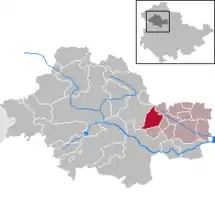 Se encuentra ubicado al norte de la ciudad de Eisenach, al noroeste de Erfurt, la capital del estado.