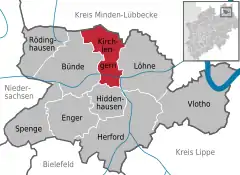 ![]() ![]() Kirchlengern Ubicación en el estado de Renania del Norte-Westfalia | ||