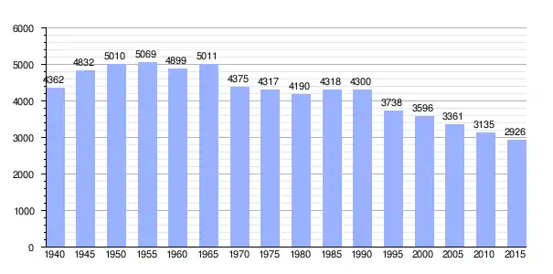 Gráfica de evolución demográfica de Kiso entre 1940 y 2015 |
