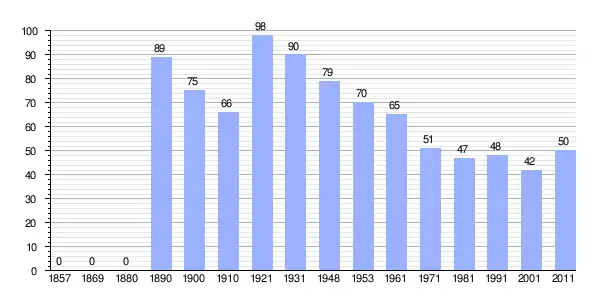 Gráfica de población de Klanice 1857-2011 |