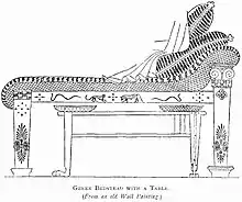 El kline ya era utilizado por los antiguos griegos a finales del siglo VII a. C. De forma rectangular, apoyaba sobre cuatro patas, dos de las cuales podían ser más largas que las otras, pudiendo tener un apoyabrazos o una cabecera. Richter distingue tres tipos: Los que tienen patas de animales, los que tienen patas torneadas y los que tienen patas rectangulares, aunque esta terminología es algo problemática.