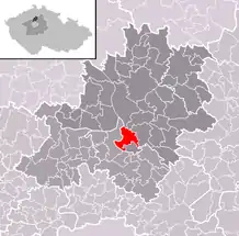 Se encuentra ubicada al norte de la región y de Praga, cerca de la confluencia de los ríos Elba y Moldava, y de la frontera con las regiones de Ústí nad Labem y Liberec.[1]