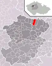 Se encuentra ubicada al noroeste de la región y de Praga, a poca distancia al norte del río Berounka —un afluente izquierdo del río Moldava—, y cerca de la frontera con la región de Ústí nad Labem.[1]