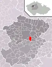 Se encuentra ubicada al noroeste de la región y de Praga, a poca distancia al norte del río Berounka —un afluente izquierdo del río Moldava—, y cerca de la frontera con la región de Ústí nad Labem.[1]