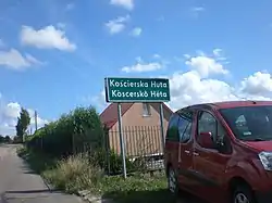 - Esta obra contiene una traducción derivada de «Kościerska Huta» de Wikipedia en inglés, concretamente de esta versión, publicada por sus editores bajo la Licencia de documentación libre de GNU y la Licencia Creative Commons Atribución-CompartirIgual 3.0 Unported.