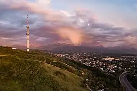 El área recreativa Kok Tobe tiene una variedad de atracciones con un parque de diversiones y restaurantes turísticos, así como una serie vistas. Está conectado con el centro de Almaty por una línea de tranvía aéreo, y el terminal de la ciudad se encuentra cerca del Hotel Kazakhstan.