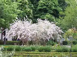 En el jardín, los arbustos necesita mucho espacio para desarrollar su largo y arqueado ramaje en forma de aerosol, la tentación de reducirlo, lo convierte en una antinatural "escoba de bruja". Los tallos más viejos cuando alcanzan el tamaño de un palo de escoba o más gruesos deben eliminarse en la base cuando el arbusto esta inactivo, para alentar el desarrollo de los tallos jóvenes.