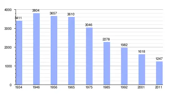 Gráfica de evolución demográfica de Komárevo entre 1934 y 2011 |