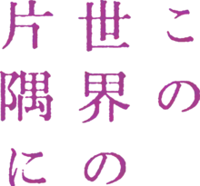 Kono Sekai no Katasumi ni (この世界の片隅に lit. En este rincón del mundo?) es una película animada producida por el estudio MAPPA de Masao Maruyama. Cuenta la historia de Suzu Urano, quien se muda para casarse y vivir con su nueva familia en la ciudad de Kure, ubicada en la costa de la prefectura de Hiroshima, donde ella sobrevive a las adversidades de la Segunda Guerra Mundial, siempre tratando de ver el lado hermoso de la vida.[1] La película se estrenó el 12 de noviembre de 2016 en cines japoneses y el 10 de marzo en cines mexicanos, también en países como Alemania, Francia y España.[2][3] Existe una versión extendida llamada Kono Sekai no (Sara ni Ikutsumono) Katasumi ni (この世界の(さらにいくつもの)片隅に lit. En este ( y otros más) rincones del mundo?) y fue estrenada el 20 de diciembre de 2019 en los cines de Japón.[4][5]