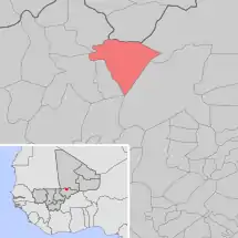 Se encuentra ubicada en el centro del país y de la región de Mopti, cerca de la confluencia de los ríos Níger y Bani.