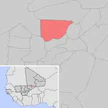 Se encuentra ubicada en el centro-este del país, cerca de la frontera con Burkina Faso y con la región de Tombuctú.