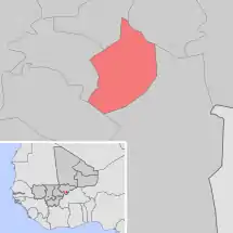 Se encuentra ubicada en el centro del país, junto a la frontera con Burkina Faso.
