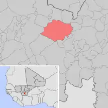 Se encuentra ubicada al suroeste del país y al oeste de la región de Sikasso, a poca distancia del río Níger, de la frontera con República de Guinea y Costa de Marfil y al sur de la capital nacional, Bamako.