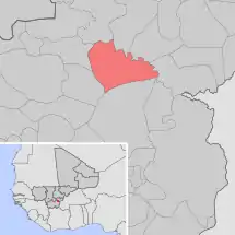 Se encuentra ubicada al suroeste del país, cerca del río Níger, al sureste de la capital nacional, Bamako, y cerca de la frontera con Burkina Faso y Costa de Marfil.