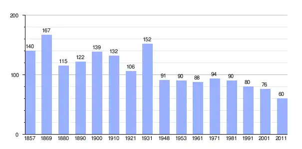 Gráfica de población de Kozji Vrh 1857-2011 |