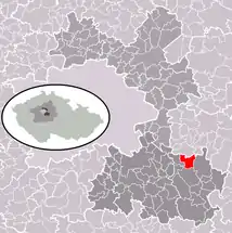 Se encuentra ubicada al este de la región y de Praga, a poca distancia al sur del curso alto del río Elba.[1]