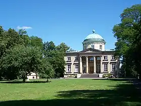 El Królikarnia fue erigido en la pintoresca escarpa del río Wisła entre 1782 y 1786 para el empresario teatral y chambelán del rey Stanisław August Poniatowski, Charles Thomatis, conde de Valéry, por el arquitecto real Domenico Merlini. [1] Se inspiró en la famosa Villa Rotonda de la época del Renacimiento en las afueras de Vicenza, Italia, diseñada por Andrea Palladio.