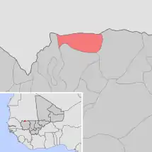Se encuentra ubicada al oeste del país y al norte de la región de Kayes, en la zona climática del Sahel, cerca de la frontera con Mauritania y la región de Kulikoró.