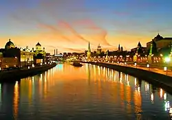 El Kremlin de Moscú (en ruso, Моско́вский Кремль, transliterado: Moskovskiy Kreml' ) es un conjunto de edificios civiles y religiosos situado en el centro de Moscú, frente al río Moscova en el sur, la Plaza Roja en el este y el Jardín de Alejandro en el oeste.