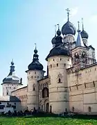 La residencia del metropolitano se construyó según un plan del Kremlin, aunque a finales del siglo XVI, la era de los «kremlins» ya había pasado.[2] Los altos muros del recinto tenían una función estética, religiosa, más que defensiva. Todos los edificios se caracterizan por la unión de la arquitectura religiosa y la arquitectura civil y militar. Muchos de los grandes monasterios rusos, como los de Laura de la Trinidad y San Sergio, el monasterio Solovetsky en el mar Blanco son fortalezas cuyas gruesas paredes podrían soportar un asedio. Esta asociación de arquitectura religiosa y militar asegura a estas construcciones una gran originalidad. Eran verdaderas fortalezas eclesiásticas y monásticas, ciudadelas de la fe ortodoxa, erizadas de atalayas y defensas.