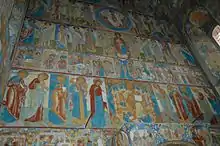La iglesia del Salvador en el Séni está conectada directamente con el palacio Blanco, el palacio episcopal. Servía como un oratorio para el metropolitano. En el interior, un magnífico arco de piedra con columnas doradas se eleva y separa el iconostasio de la nave como una pantalla de jubé. Este diseño es único en la arquitectura rusa.[11] El interior de la iglesia fue pintado por el pope Timoteo y los maestros de Yaroslavl: Dmitri Grigoriev, Fédor et Ivan Karpov.. Las pinturas están tituladas: