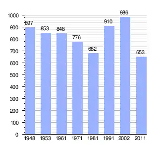 Gráfica de evolución demográfica de Krivaja entre 1948 y 2011 |