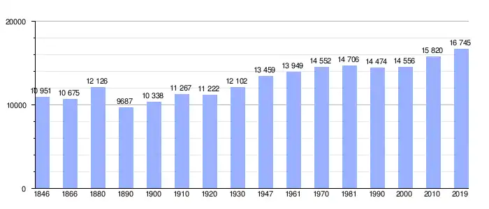 Todos los datos históricos relativos al actual municipio, el siguiente gráfico refleja su evolución demográfica, incluyendo municipios después de efectuada la fusión el 1 de enero de 1977.