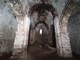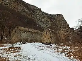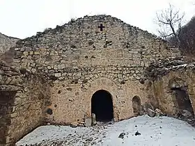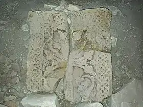 De acuerdo con el experto en monumentos Samvel Karapetyan, frente a la pequeña iglesia oriental, hasta 1989, dos jachkars se colocaron uno al lado del otro en su lugar original. Mientras formaba parte de la República Socialista Soviética de Azerbaiyán, el monumento sufrió mucho y se intentó eliminar los indicios de sus orígenes armenios para presentarlo como un monasterio albanés caucásico. Estos jachkars habían desaparecido cuando las fuerzas armenias tomaron el control de la región en abril de 1993, pero las inscripciones hechas en ellos habían quedado registradas.[5]