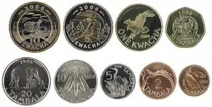 La primera serie de monedas comprendía los valores de 1 a 20 támbala, posteriormente en 1993 se añadió el facial metálico de 1 kwacha y a principios de 2007 se incluyeron dos nuevas monedas bimetálicas de 5 y 10 kwacha que irían sustituyendo progresivamente a los billetes de la misma denominación. En el año 2012 se acuñó una nueva serie de monedas de 1, 5 y 10 kwacha de menor tamaño y peso.