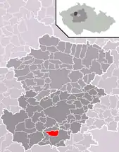 Se encuentra ubicada al noroeste de la región y de Praga, a poca distancia al norte del río Berounka —un afluente izquierdo del río Moldava—, y cerca de la frontera con la región de Ústí nad Labem.[1]