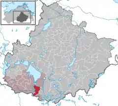 Se encuentra junto a la frontera con el estado de Brandeburgo.