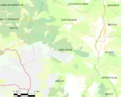 Lées-Athas es una población y comuna francesa, en la región de Aquitania, departamento de Pirineos Atlánticos, en el distrito de Oloron-Sainte-Marie y cantón de Oloron-Sainte-Marie-Est.