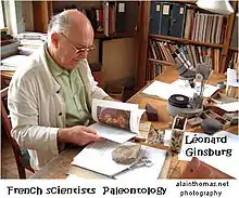 ![]() L. Ginsburg trabajando en junio de 2001 en el Instituto de Paleontología del Museo Nacional de Historia Natural en París | ||