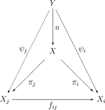 El límite inverso puede ser definido en forma abstracta en una categoría arbitraria por medio de una propiedad universal. Sea (Xi, fij) un sistema inverso de objetos y morfismos en una categoría C (con la misma definición indicada previamente). El límite inverso de este sistema es un objeto X en C junto con morfismos πi : X → Xi (llamadas proyecciones) que satisfacen πi = fij O πj . El par (X, πi) debe ser universal en el sentido que para todo otro par del tipo (Y, ψi) existe un único morfismo u : Y → X que hace que todas las identidades "obvias" sean verdaderas; o sea el diagrama.