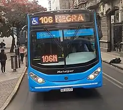 ![]() Unidad perteneciente a la empresa Movi, explotadora de la línea 106, desde el 20 de julio de 2019, en su variante "negra" | ||