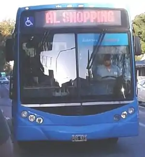 ![]() Mercedes-Benz afectado a la línea 113, con uno de los destinos en su cartelera: "Al shopping" | ||