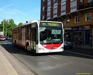![]() Autobús de la línea 11 en la calle Alcalde Miguel Castaño. | ||