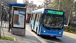 ![]() Interno 4423 de la empresa Rosario Bus, prestataria del servicio de la línea 143, en sus ramales "Negra" y "Roja". | ||
